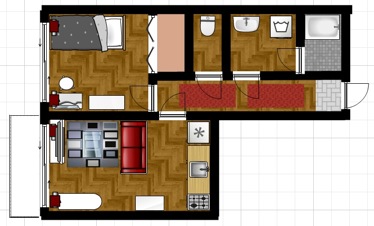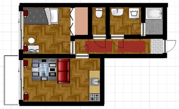 1DK(6畳のダイニングキッチンDKと4.5畳程度の洋室)のシミュレーション
