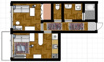 よって、喧嘩した場合や一人で寝たい場合には、一人の空間が部屋毎に確保できるので、半同棲関係がより長続きしやすいレイアウトです。