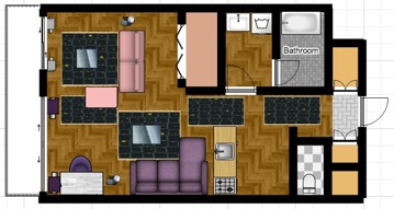 1LDK(4畳半の洋室と8畳程度のLDK)のシミュレーション