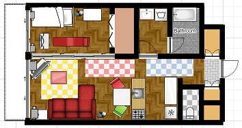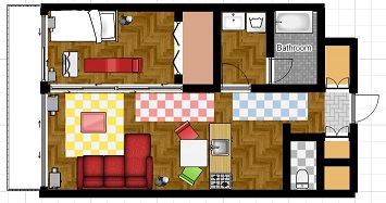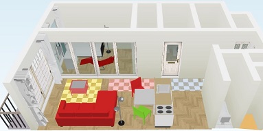 1LDK(4畳半の洋室と8畳程度のLDK)のシミュレーション